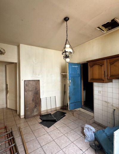 La rénovation lourde de cet appartement au cœur du centre-ville de Saint-Étienne s’est révélée être un véritable défi. Ancien logement d’un gérant d’atelier de torréfaction de cacahuètes, l’espace et ses ateliers désaffectés depuis des décennies ont suscité l’intérêt de mes clients. Mais quelle aventure de restaurer ce bâtiment ! Malgré une préparation minutieuse, les surprises en cours de chantier s’enchaînent : charpente bois pourrie, tuyaux d’évacuation d’eau pluviale, et pire, des eaux usées bouchés, les cheminées des voisins qui s’écroulent sur nos toits…